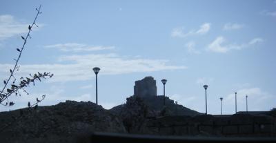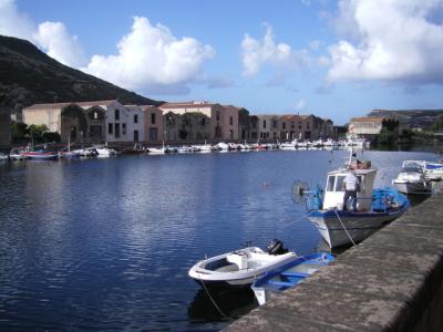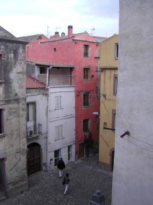 Bei wechselhaften bis regnerischem Wetter, das Meer ist ganz aufgewühlt, empfiehlt sich eine Tour ins Landesinnere. Wir fahren Richtung Magomadas auf der Suche nach den Nuraghen, die im Reiseführer so gerühmt werden, Steintürme einer vorchristlichen Kultur, sie sind schwer zu finden. Leichter ist es mit einem Mittagsmenü, diesmal Spaghetti mit cozze ( Muscheln - nicht was ihr denkt) und pulpo frito (frittierte kleine Tintenfische), sehr lecker und preiswert. Abends wieder auf unserer Piazza Costitutione, es ist kühl, aber man sitzt im Freien. Hier gibt’s heute Zuppa di pescheria (Muscheln in Weinsoße). Wir sitzen noch bis spät auf dem Balkönchen unseres Zimmers, mit Blick auf Castello und kleine Piazza.