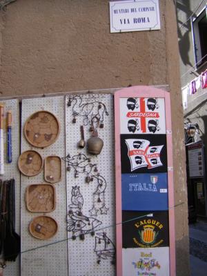 Interessante Streitfrage unter Touris: die 4 Mohren der sardischen Flagge haben einmal eine Augen- und andermal eine Stirnbinde, Fehler oder egal? Man konnte es nicht aufklären.