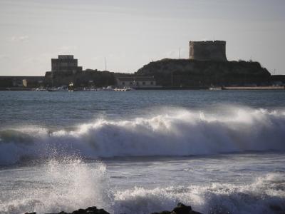 Das Wetter ist sonnig, aber stürmisch, am Strand türmen sich wilde Wellenberge – das Mittelmeer spielt Atlantik.